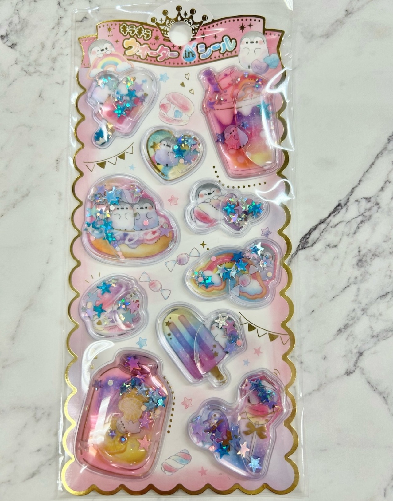 ペンギンがモチーフのキラキララメがゆらゆら動くかわいいシールです